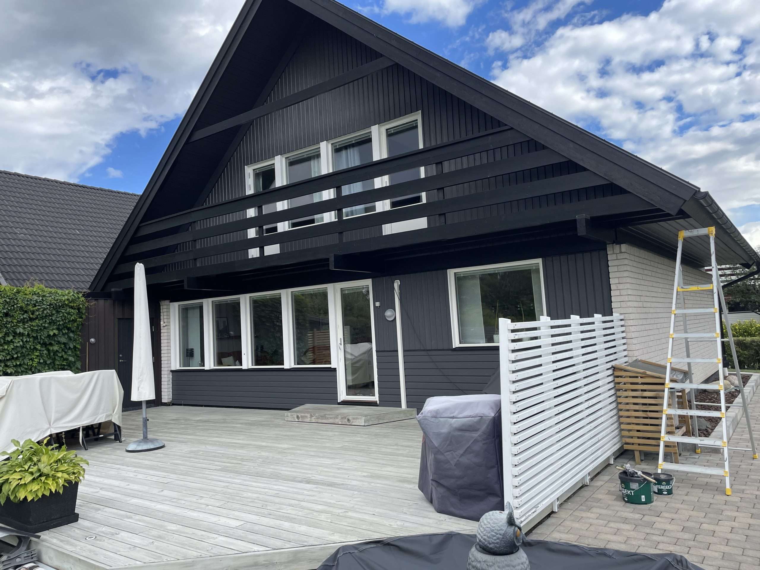 Nu är årets största projekt äntligen klart. Vi har hjälpt kunden med en hel fasadrenovering, där vi har för att nämna några grejer bytt panel på båda hus och garage, bytt några fönster, bytt garagedörr, målat hus, garage och fönster sen har vi även byggt en ny farstukvist istället för ett entrétak som nästan höll på att rasa. Det har varit ett långt och roligt projekt med mycket variation, vi tackar för förtroendet #viksjöbygg #bygg #fönsterbyte #farstukvist #fasadmålning